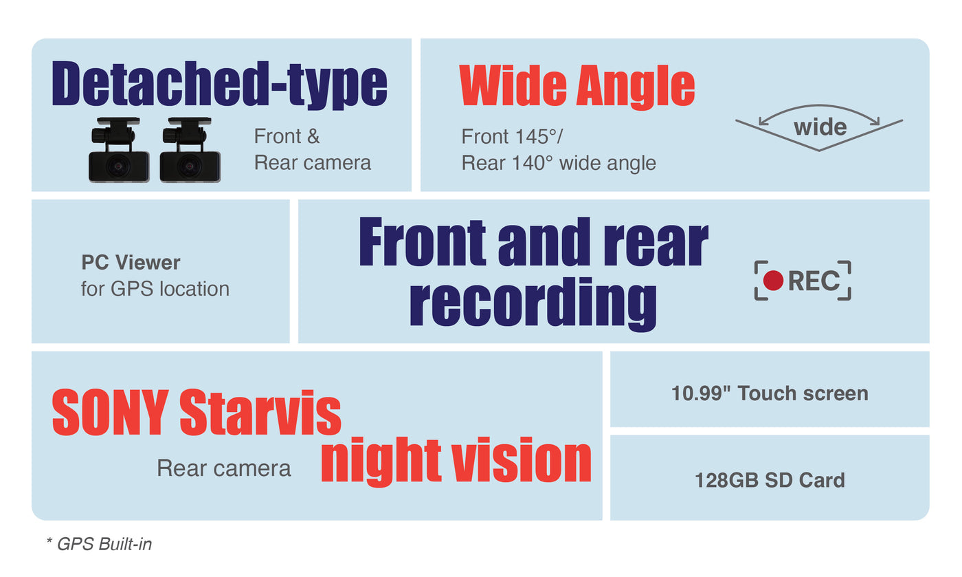 • 145° front and 140° rear wide-angle coverage