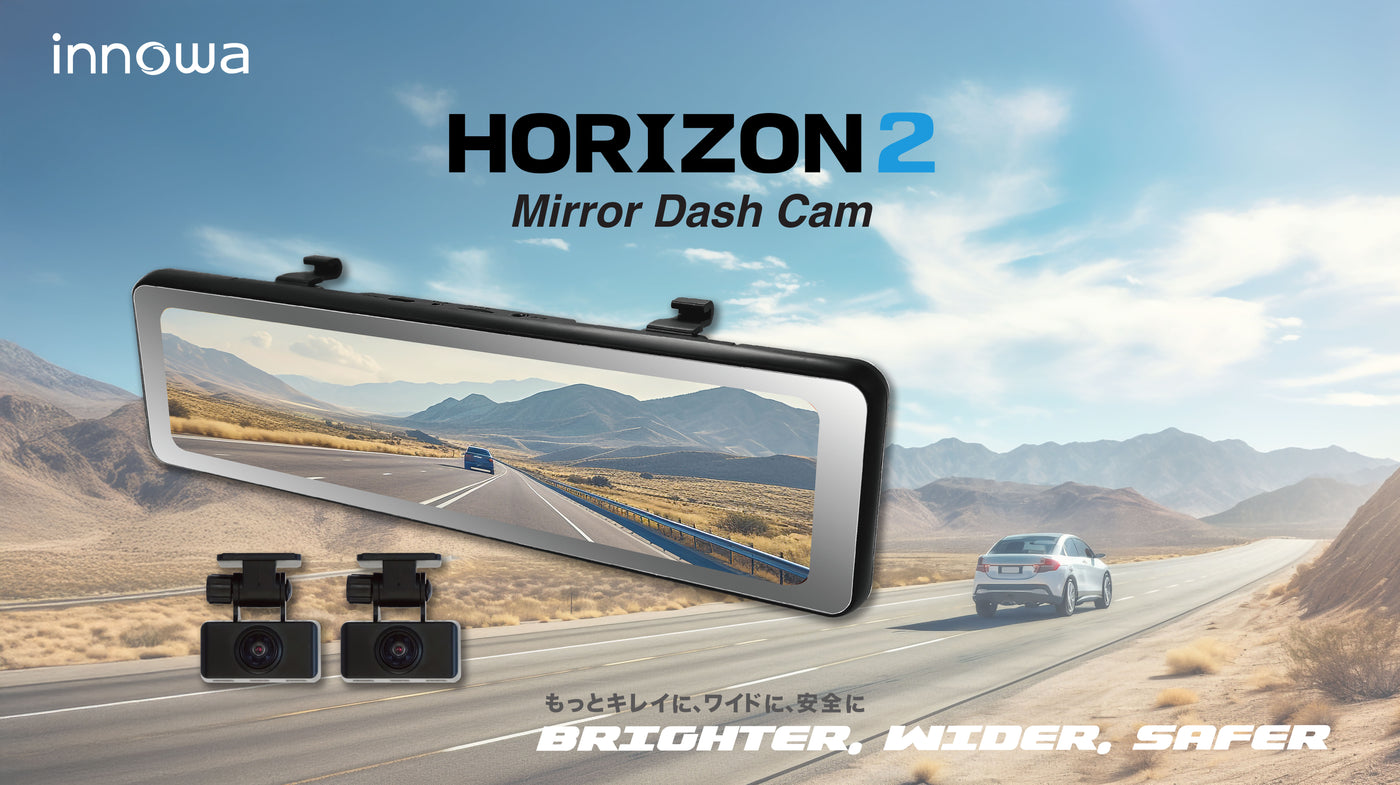 The innowa Horizon 2 is a premium mirror dash cam with separated front and rear cameras that record in Full HD 1080P. Its 10.99" IPS touchscreen with swipe control and advanced WDR technology ensures smooth visibility, even during rapid lighting changes. Compact, reliable, and loaded with safety features.