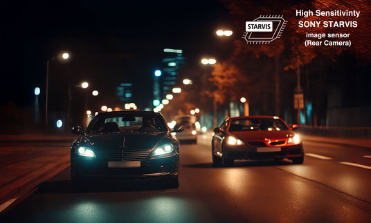 A: Yes. The rear camera features a SONY STARVIS sensor for clear night vision. The front camera captures Full HD video but does not use STARVIS.