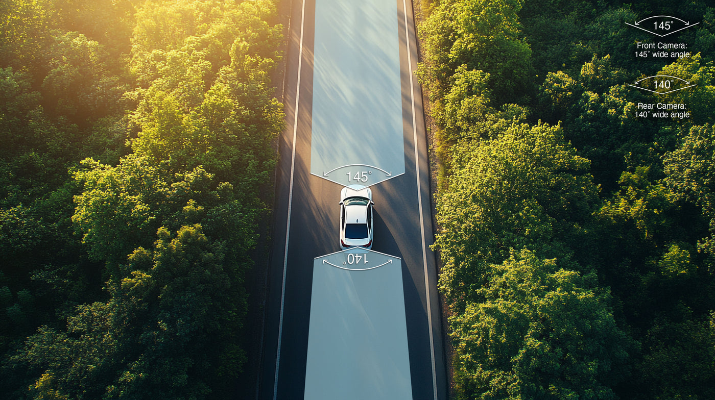 A: The front and rear cameras are separate from the mirror unit, allowing flexible placement. The 9m rear cable supports a wide range of vehicle types.