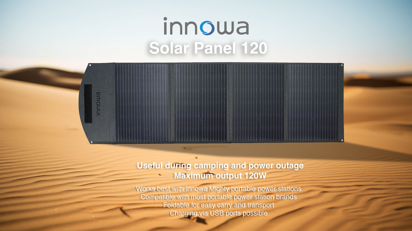 innowa Solar Panel 120 is extremely useful during camping and power outage. It has a maximum power output of 120W. It works best with innow Mighty portable power stations. It is compatible with most portable power station brands. It is foldable for easy carry and transport. It have multiple USB outputs to charge to your different electronics devices.